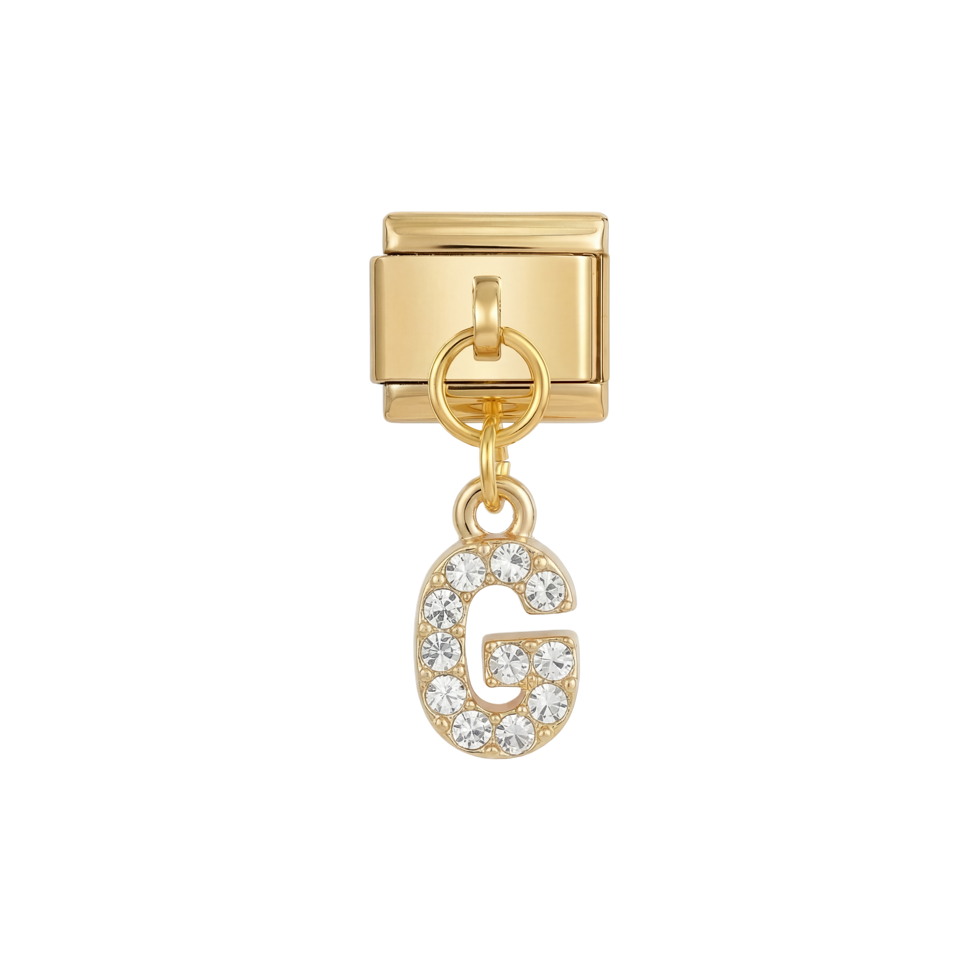 Letter G with stones, Hanging, on Gold