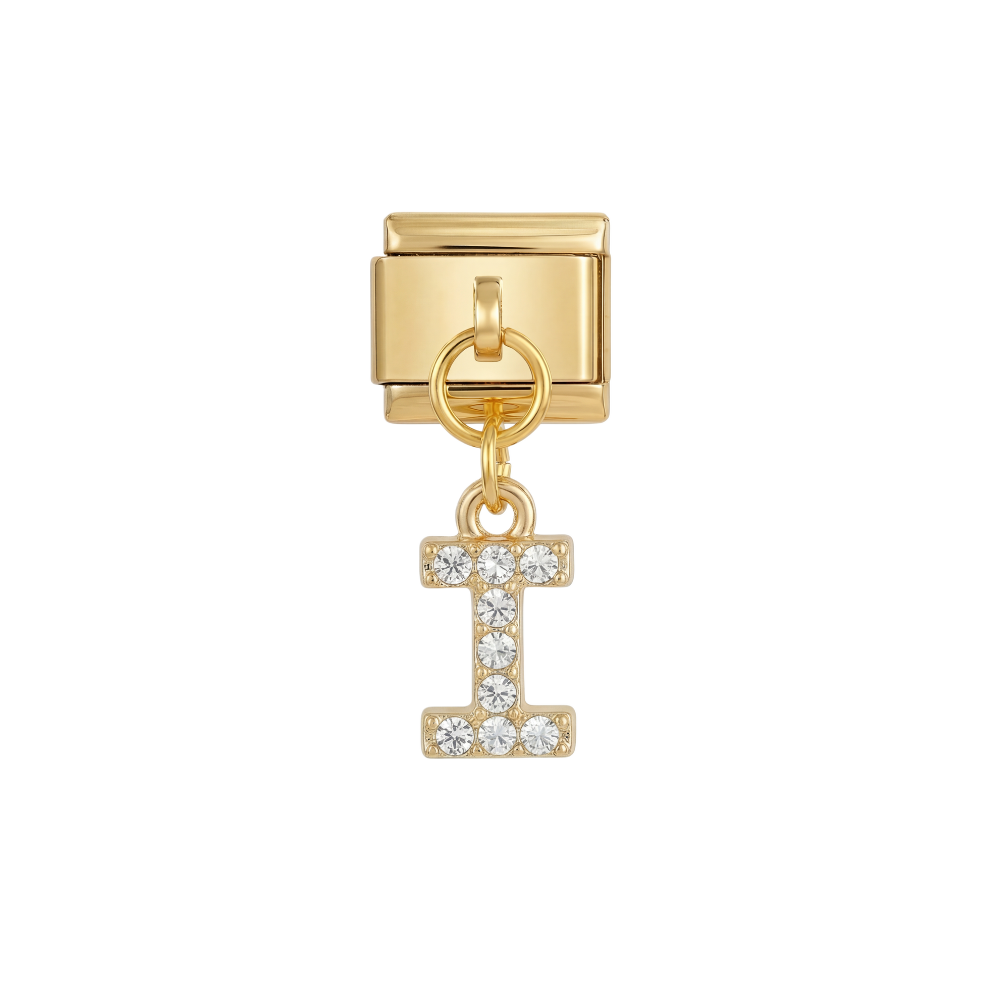 Letter I with stones, Hanging, on Gold
