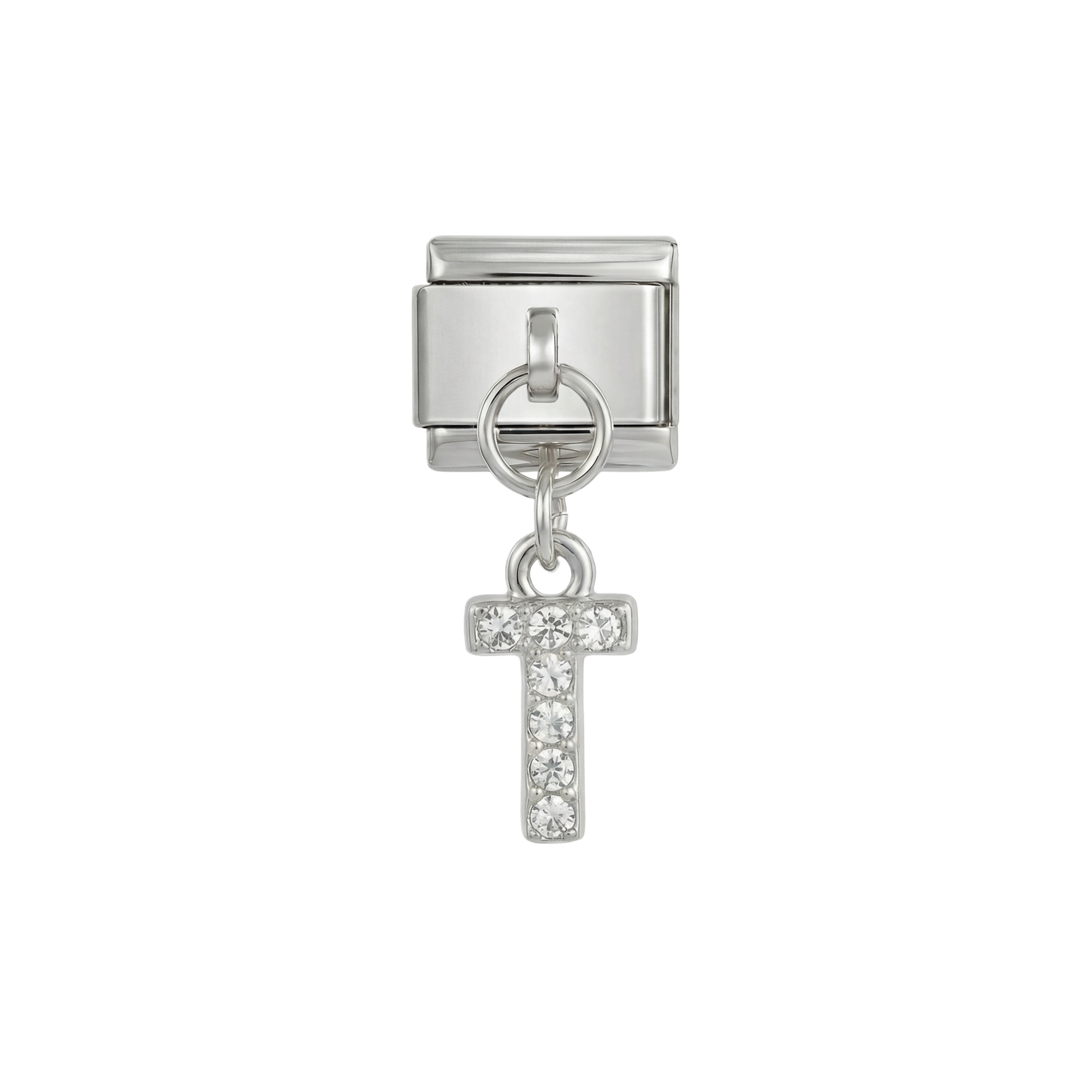 Letter T with stones, Hanging, on Silver